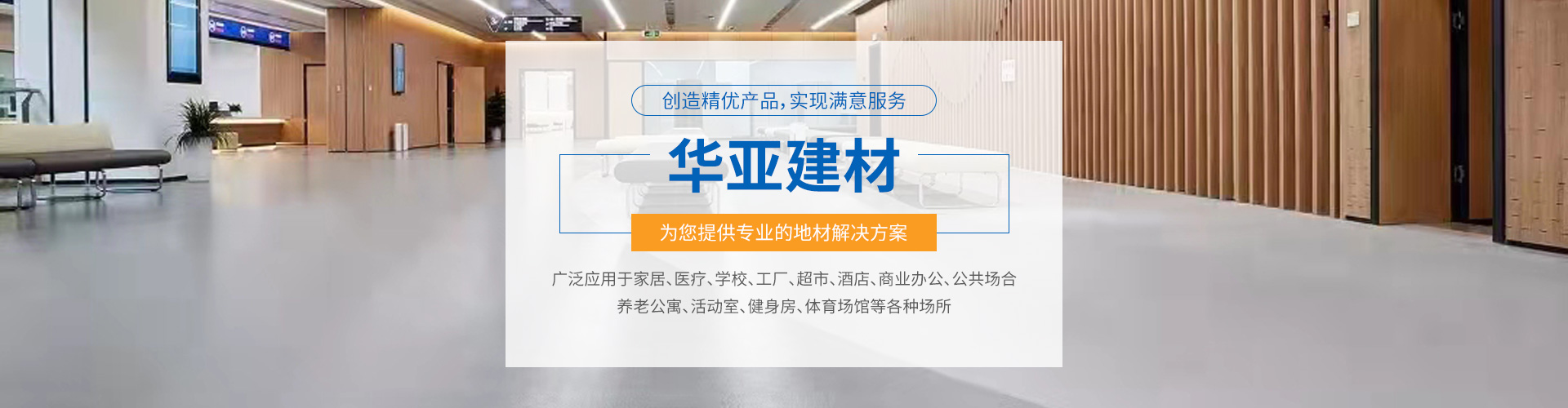 華亞建材從2000年就涉足彈性地材行業(yè),專(zhuān)注于彈性地材研發(fā)、設(shè)計(jì)、生產(chǎn)、銷(xiāo)售、安裝、售后為一體的現(xiàn)代化新興企業(yè)。主要產(chǎn)品有中高端PVC地板、橡膠地板、石塑地板、運(yùn)動(dòng)地板、個(gè)性定制地板 、運(yùn)動(dòng)木地板、 懸浮拼裝地板、 防靜電地板、工業(yè)地板 、環(huán)氧地坪、地毯、塑膠跑道 、硅pu球場(chǎng) 、人造草坪等產(chǎn)品。 產(chǎn)品以耐磨、抗菌、防潮、耐污、耐碘、消音、防靜電、易清潔、綠色環(huán)保、色彩多樣、性?xún)r(jià)比高、耐久性強(qiáng)等特點(diǎn),能滿(mǎn)足不同層次的客戶(hù)需求,深受廣大裝飾界的認(rèn)同。廣泛應(yīng)用于家居、醫(yī)療、學(xué)校、工廠(chǎng)、超市、酒店、商業(yè)辦公、公共場(chǎng)合、養(yǎng)老公寓、活動(dòng)室、健身房、體育場(chǎng)館等各種場(chǎng)所。 了解更多>>